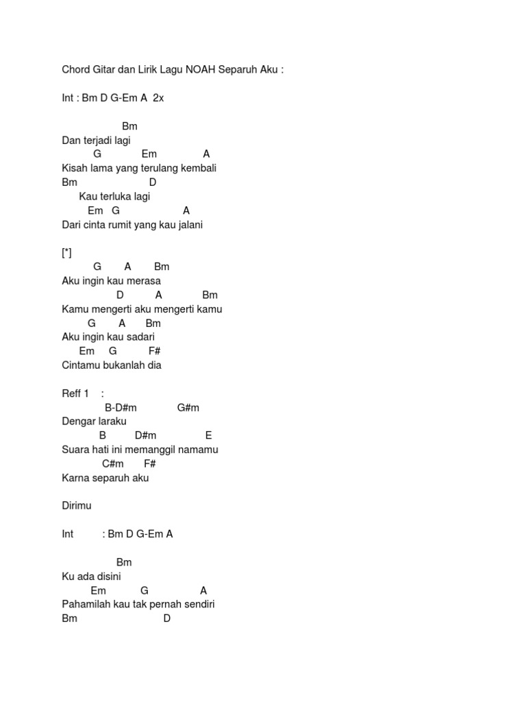 Chord Gitar Dan Lirik Lagu Noah Separuh Aku
